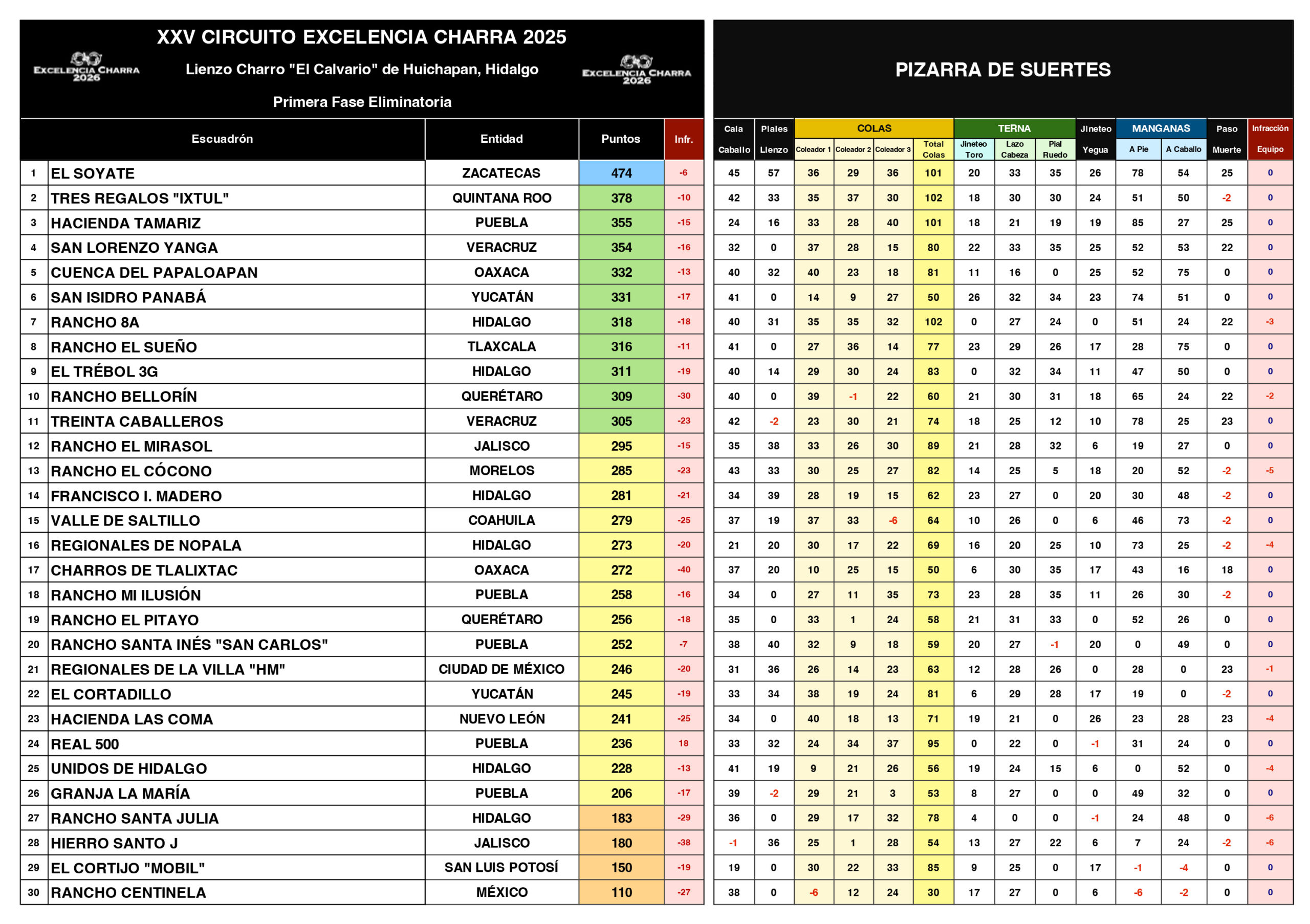 Con este resultado, El Soyate no solo se coloca en la primera posición de la ronda inicial, sino que además supera la marca previa de 472 unidades impuesta en la edición 2025 por Tres Regalos, reafirmando el altísimo nivel competitivo que se vive en el marco del 25 aniversario del circuito.