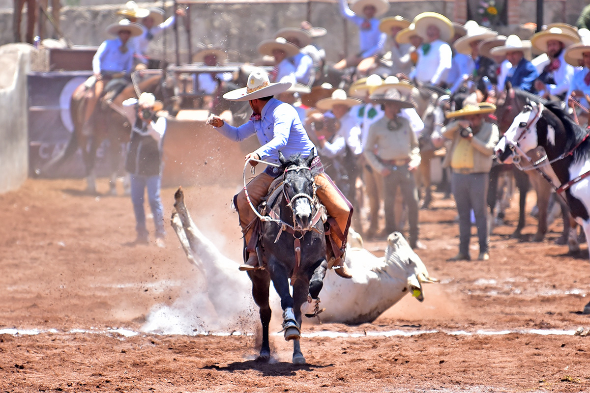 La singladura de los bicampeones nacionales RG2 de San Luis Potosí también arrancó con una extraordinaria cala de caballo de 41 puntos por cuenta de Refugio Raya, y José Andrés Aceves Aceves se cubrió de gloria al quemar sus tres piales en el lienzo, dos remolineados de 20 y 21, más otro de piquete de 24; por si fuera poco, sus compañeros colearon para 104, 40 de Jesús Aceves Sánchez, quien se llevó la quiniela, 38 de Diego Ibarra Miranda y 26 de Alfredo León.