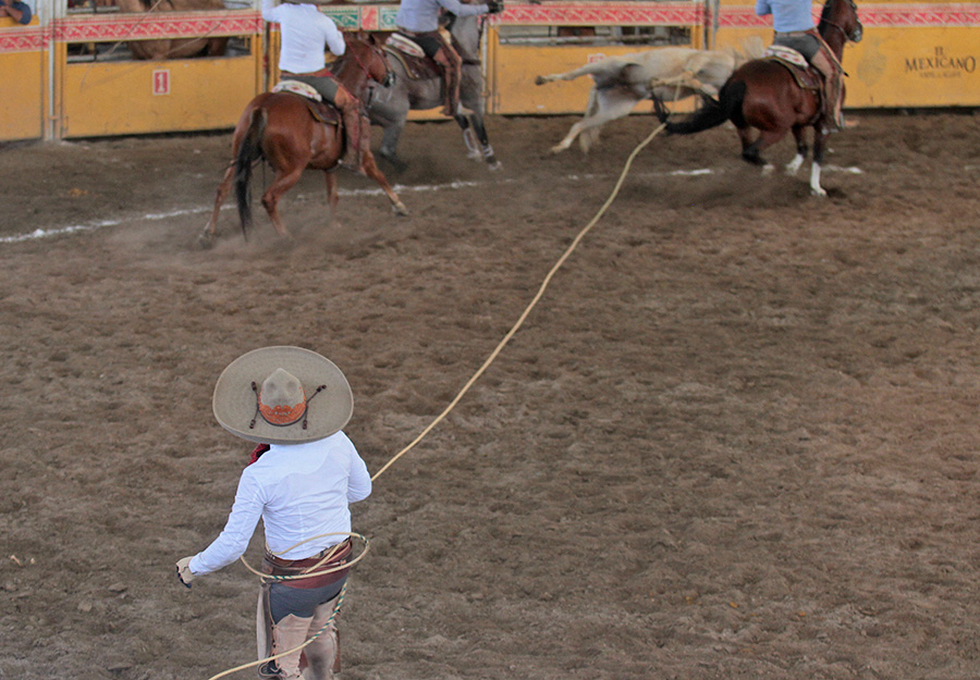 El jineteo de toro fue ejecutado por Juan Diego Gallardo, cosechando 12 unidades, lazo cabecero de 23 de Gilberto Morelos y pial en el ruedo de 29 con que Felipe Hermosillo Ruvalcaba completó la terna en poco más de cinco minutos.